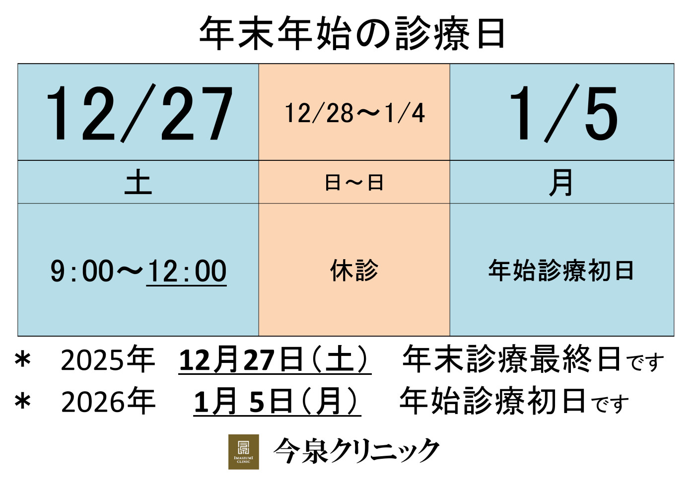 年末年始の診療日です